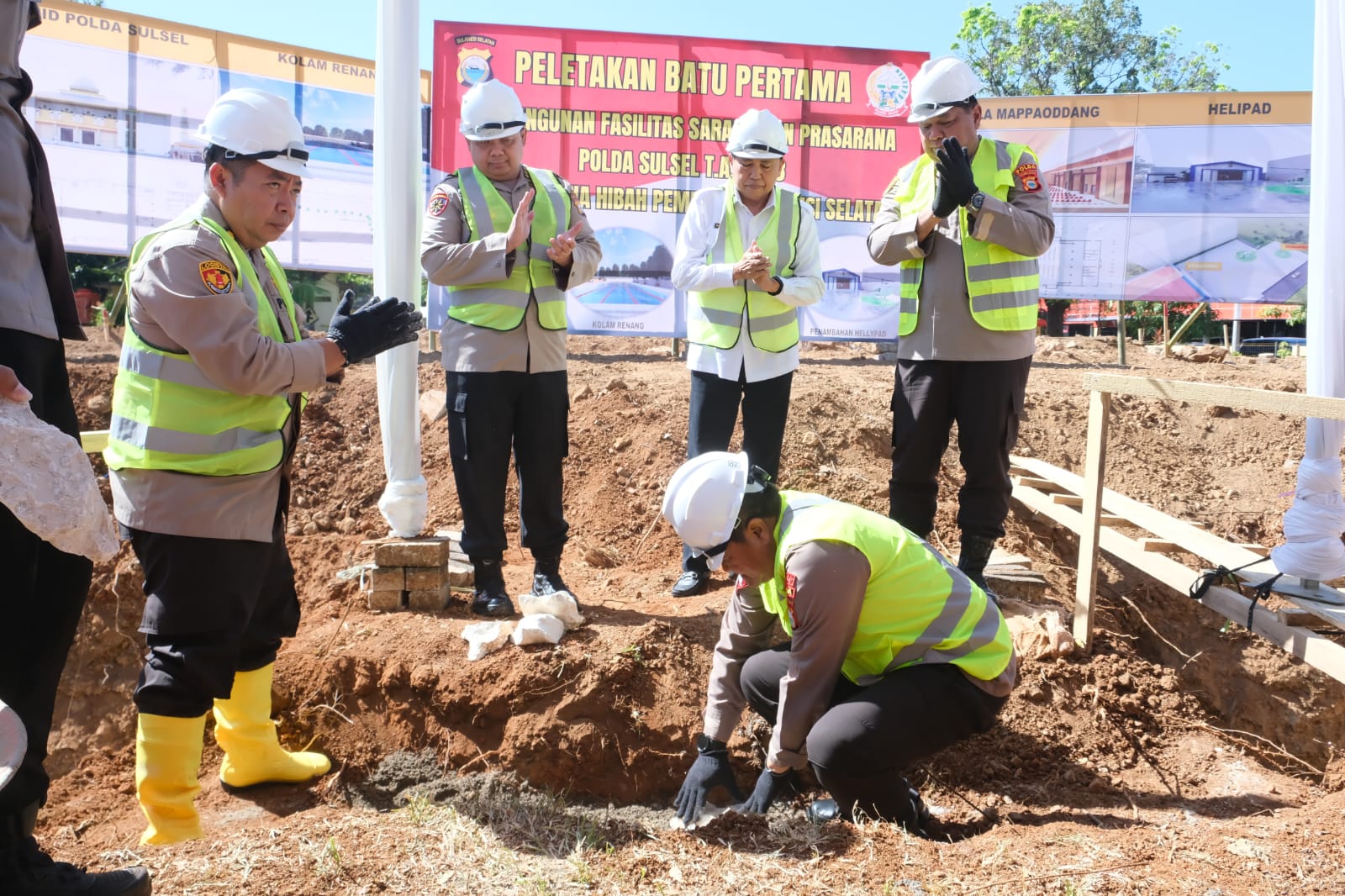 Celebesplusonline.com ( Makassar Sulsel ) — Kapolda Sulsel Irjen Pol Drs. Setyo Boedi Moempoeni Harso, S.H., M.Hum, melakukan peletakan batu pertama pembangunan Masjid Syuhada Mapolda Sulsel, yang berlokasi di dalam area Mapolda Sulsel, Rabu (09/08/2023).