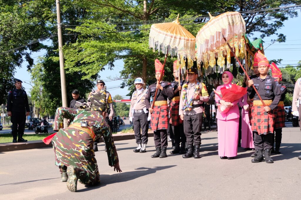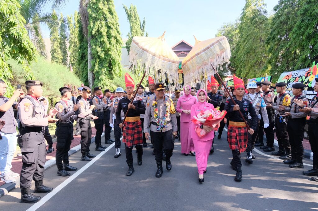 Kapolda Sulsel Irjen Pol  Andi Rian R. DJajadi beserta istri kemudian menyapa jajaran personil Polda Sulsel yang berdiri berjejer menyambutnya.