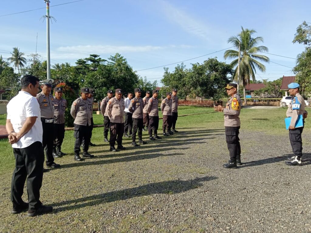 Sebelum personil di terjunkan ke Pelantikan KPPS,,dilakukan Apel ,Pengecekan dan arahan oleh Kapolsek