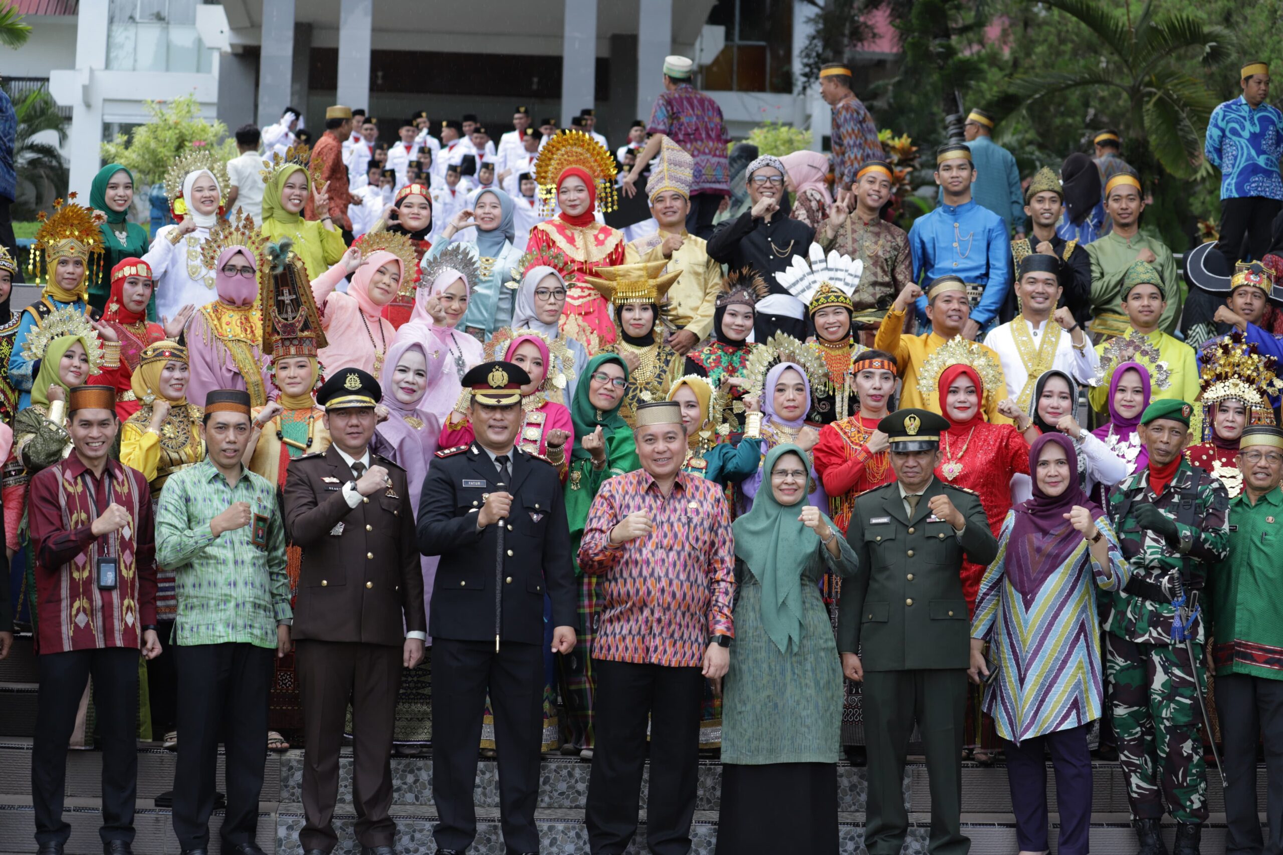 Celebesplusonline.com ( Wajo Sulsel ) — Upacara peringatan Hari Lahir Pancasila tahun 2024 di lapangan upacara Kantor Bupati Wajo, dimana para peserta upacara mengenakan pakaian sutera dan adat nusantara,bertindak selaku Inspektur Upacara Pj.Bupati Wajo Andi Bataralifu.