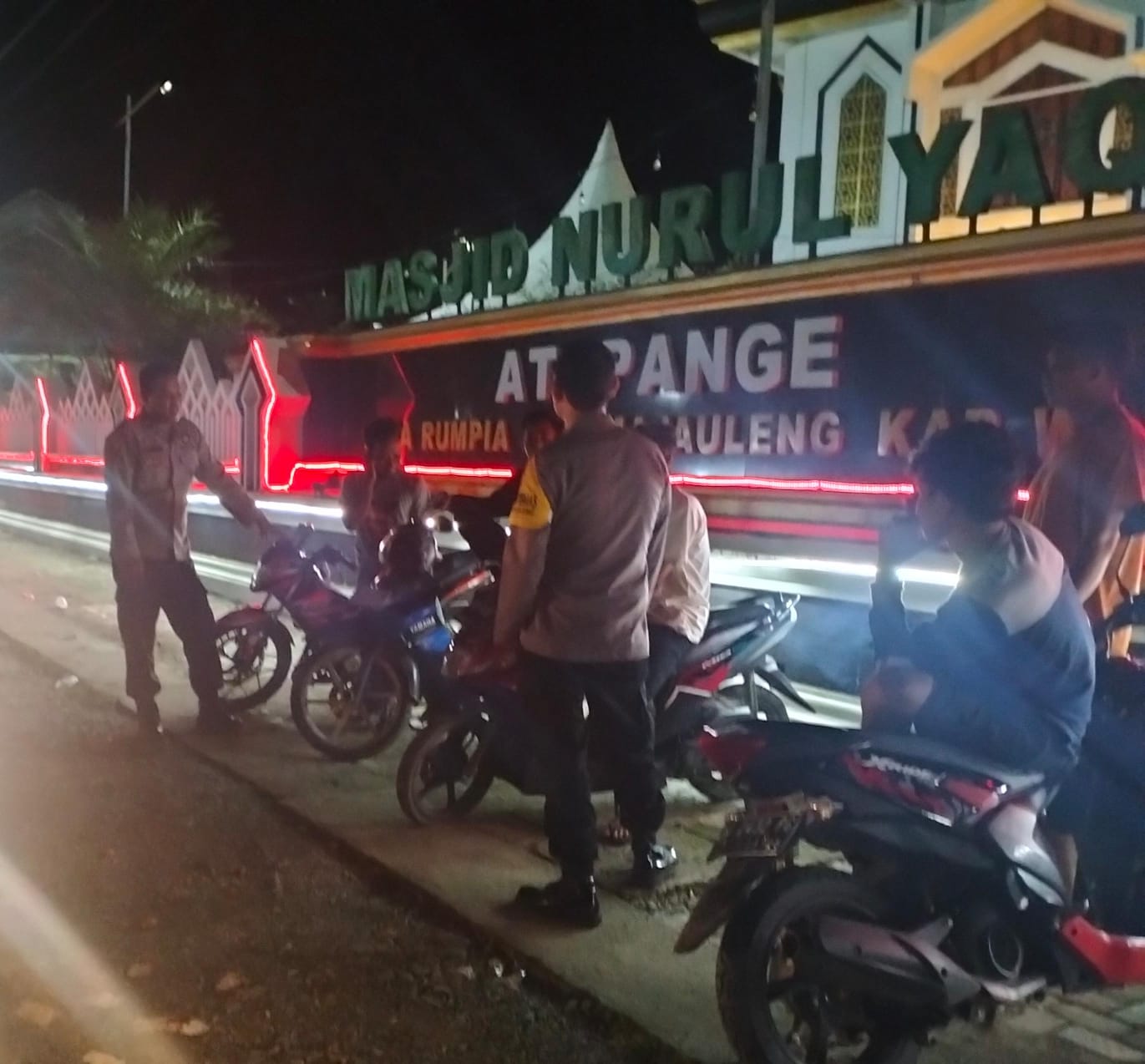 Petugas menyambangi beberapa permukiman warga yang ada di wilayah Kecamatan Majauleng dan menemui warga yang sedang melintas serta para pemuda yang masih nongkrong pada malam hari untuk memberikan imbauan kamtibmas.