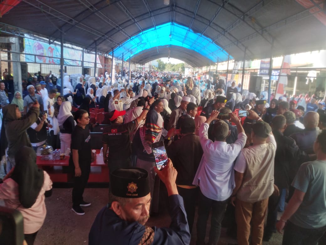 Cebesplusonline.com (Wajo Sulsel)- Ribuan manusia menjadi saksi dalam peresmian posko kemenangan pasangan bakal calon Bupati dan Wakil Bupati Wajo ,Duo Amran periode 2025- 2030 di Kecamatan Belawa.