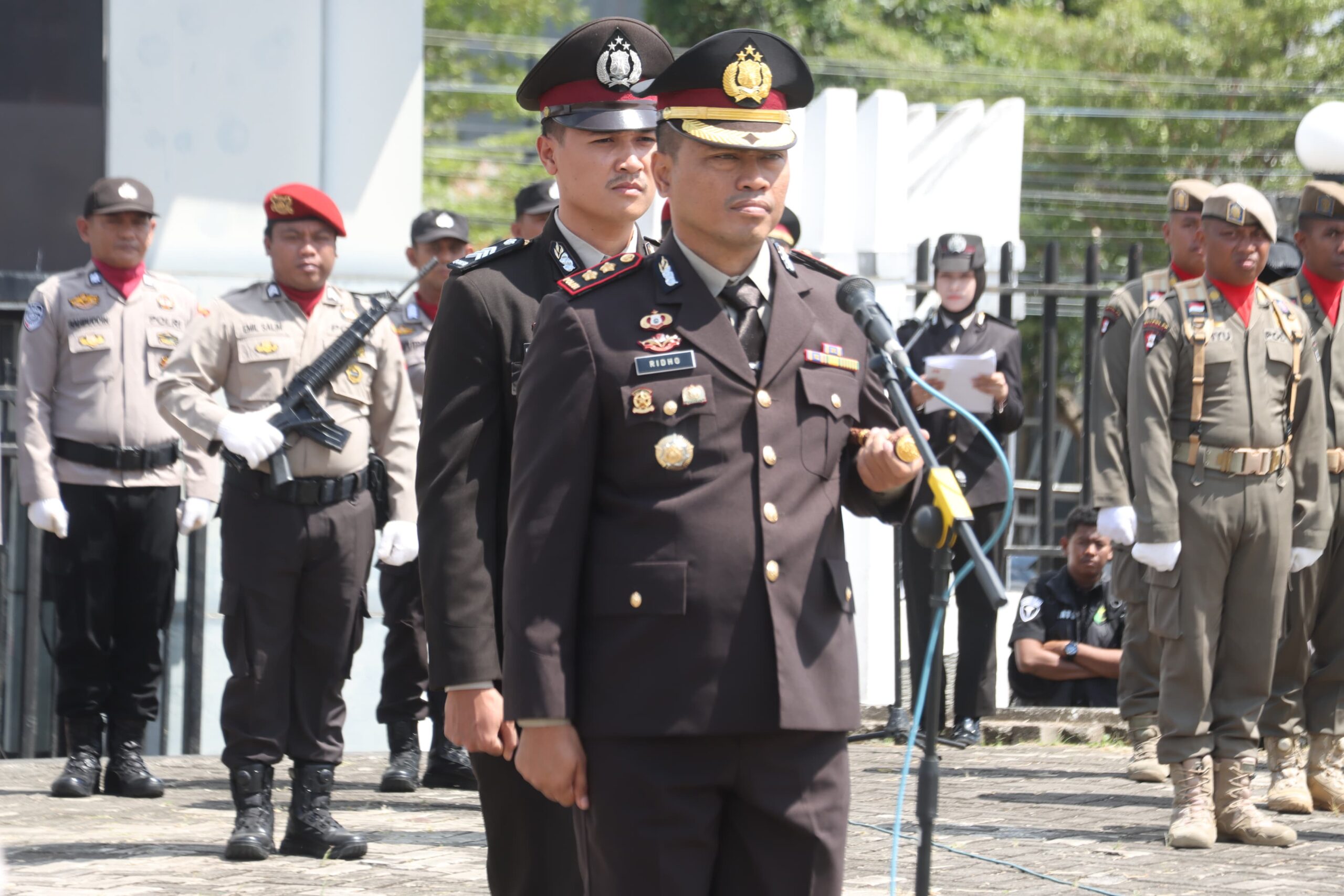 H. Andi Muhammad Alauddin Palaguna, S. Sos, Kepala Kejaksaan Negeri Wajo Andi Usama Harun, S.H, M.H, Ketua Pengadilan Negeri Sengkang Dr. Ilham, SH., MH,Waka Polres Wajo KOMPOL Hardjoko, SH. MH bersama PJU Polres Wajo, Ketua Penggerak PKK Kabupaten Wajo, peserta upacara dari Kodim 1406 Wajo, Polres Wajo dan Satpol PP Kab. Wajo