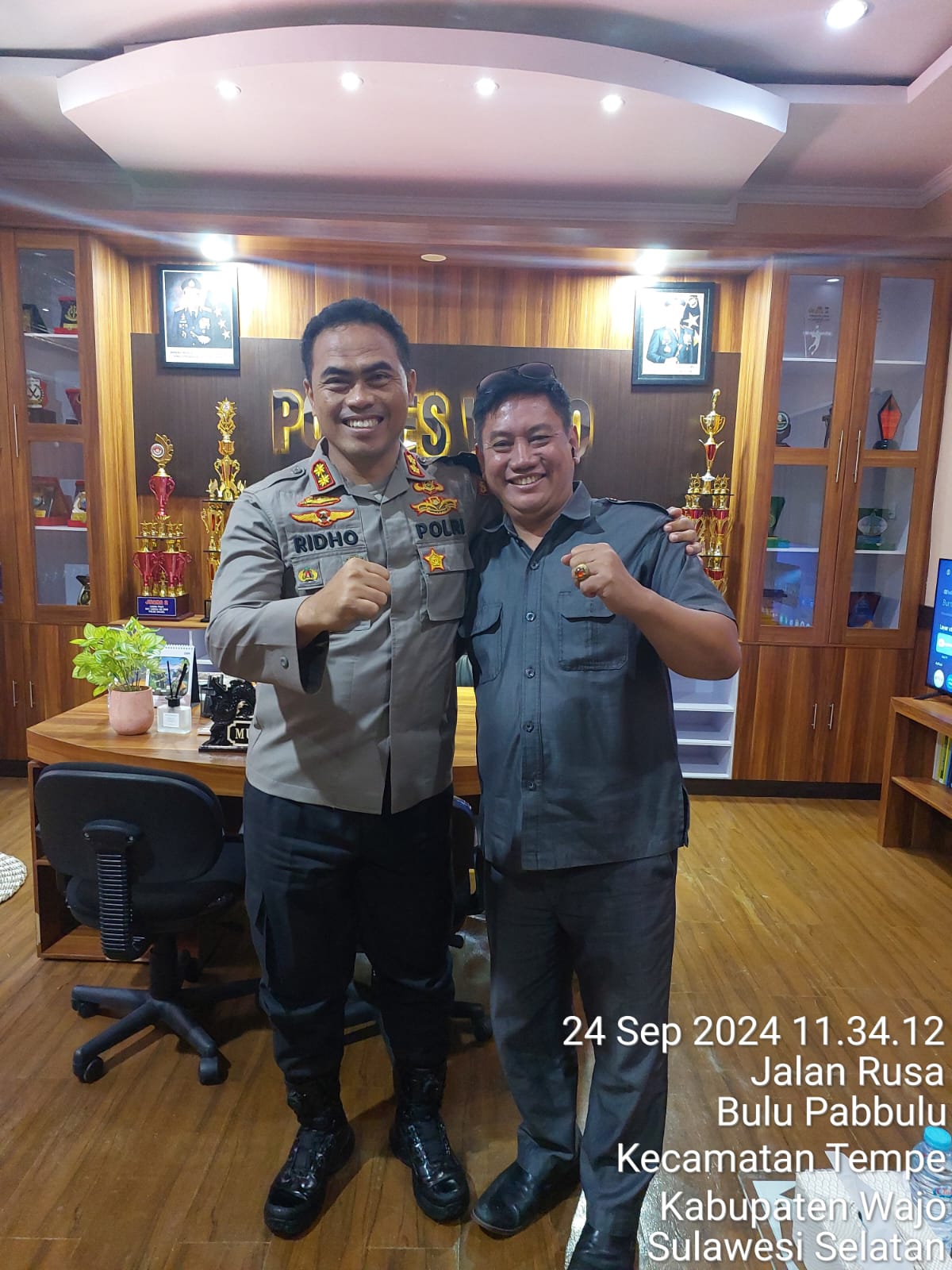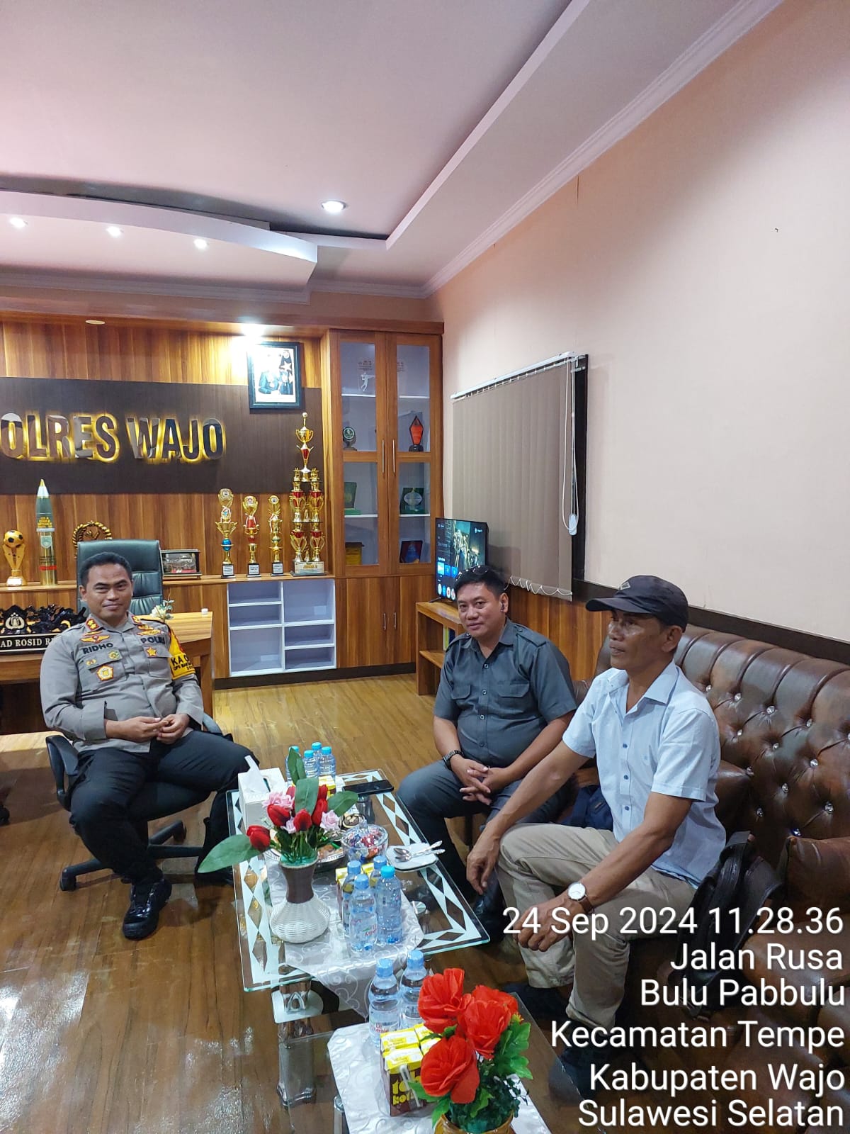 Wajo Sulsel — Silaturahmi antara Pimpinan media Celebesplus ,Sultan dan Wakil Ketua LPPN – RI Kabupaten Wajo,Hamsing Ismail dengan Kapolres Wajo AKBP Muhammad Rosid Ridho, S.IK berlangsung di ruang Kapolres Wajo.Selasa (24/9/2024 ).