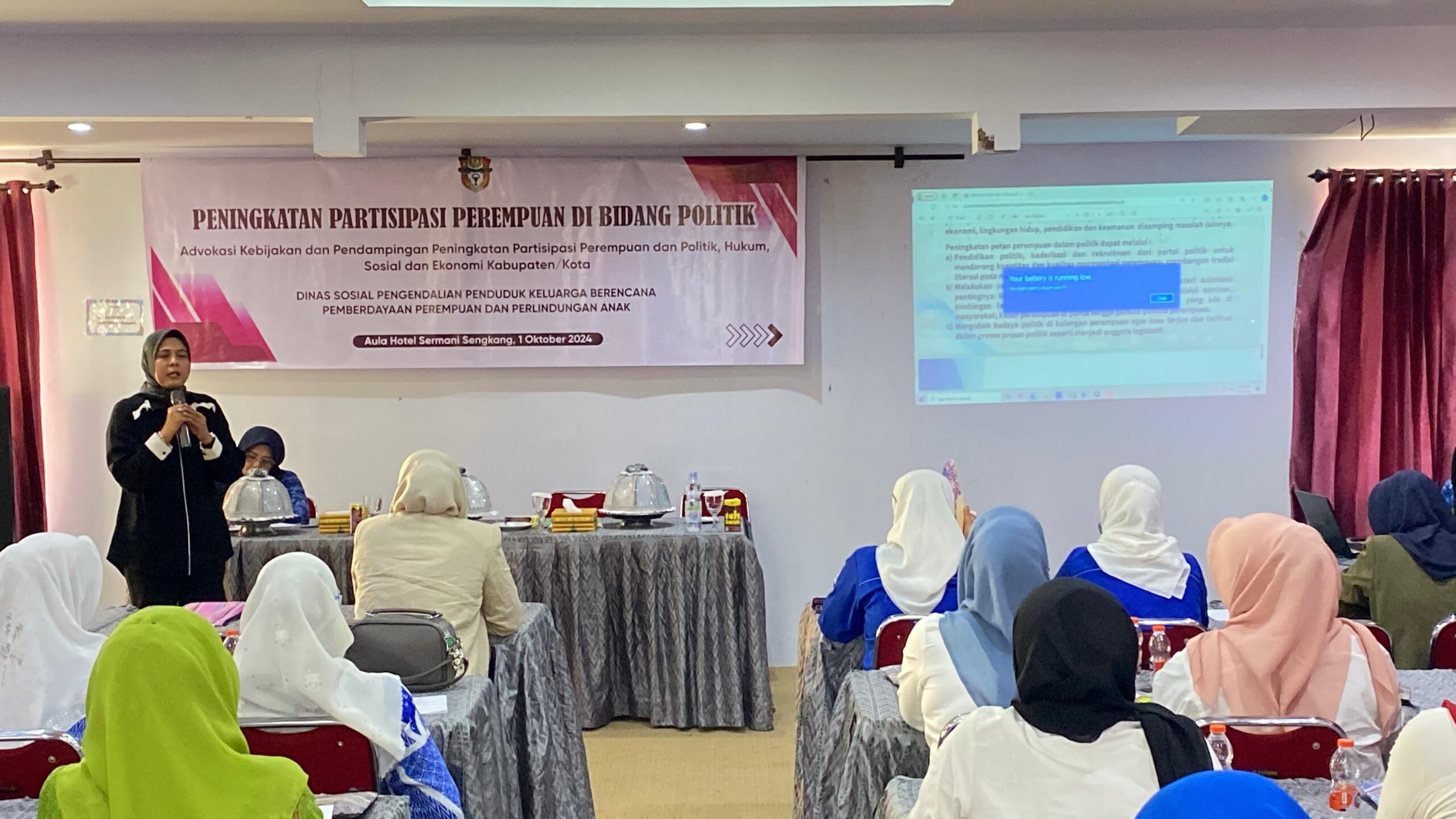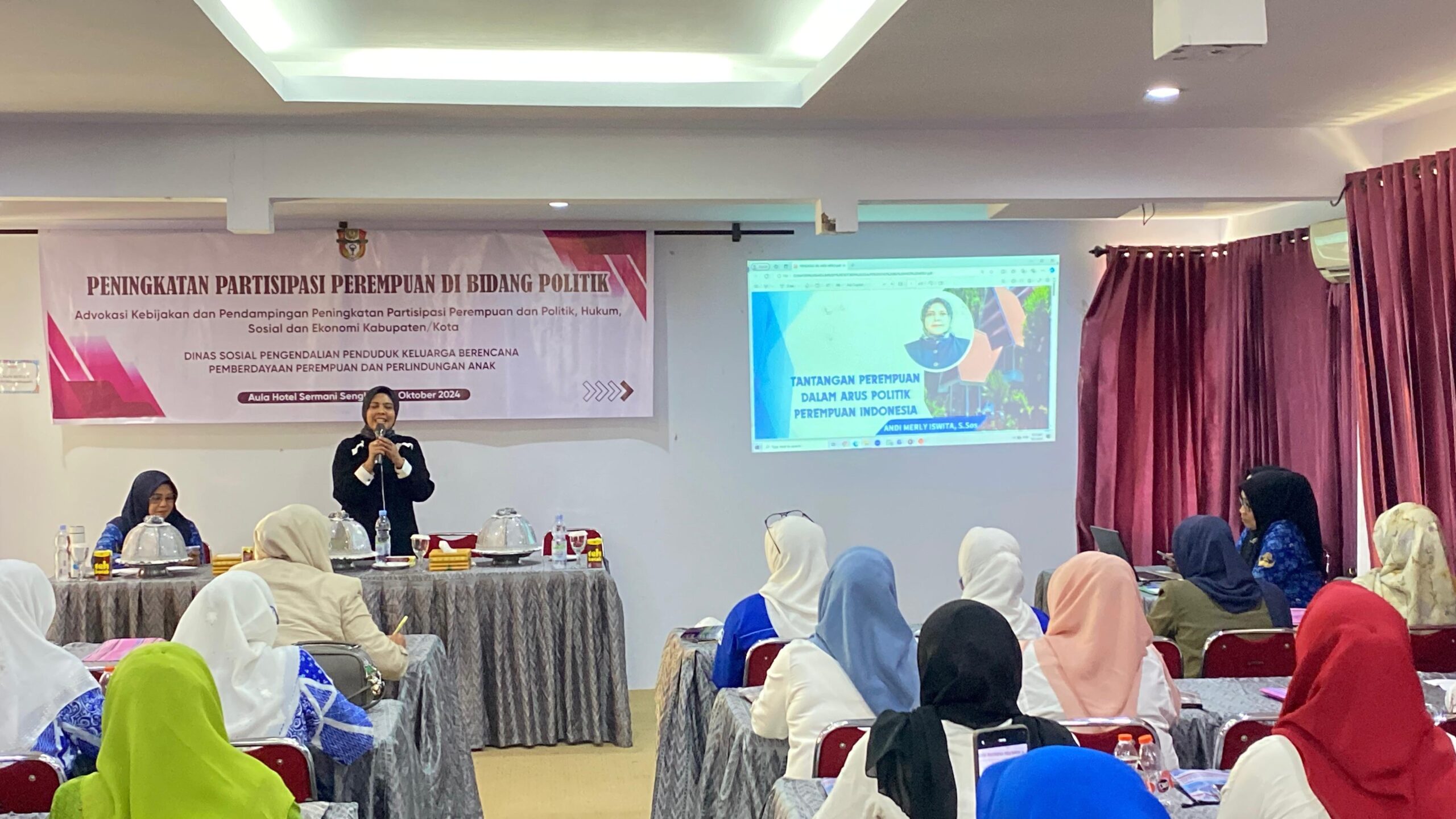 Wajo Sulsel– Wakil Pimpinan Sementara DPRD Wajo, A. Merly, didapuk sebagai pemateri dalam kegiatan peningkatan partisipasi perempuan di bidang politik yang digelar oleh Dinas Sosial, Pengendalian Penduduk, KB, Pemberdayaan Perempuan, dan Perlindungan Anak (DS2KBP3A), Selasa, 1 Oktober 2024. Acara ini bertujuan untuk meningkatkan partisipasi perempuan di bidang politik di Kabupaten Wajo.