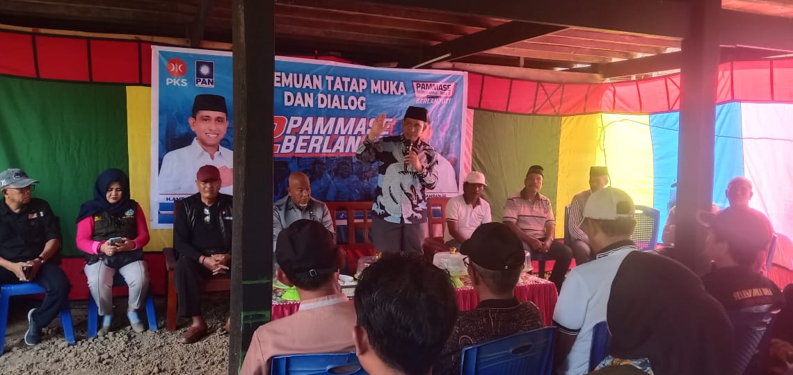 Celebesplusonline.com.( Wajo Sulsel ) 3 Oktober 2024 – Kampanye dialogis kembali digelar oleh tim sukses pasangan Pammase di Desa Sanreseng Ade, Kecamatan Bola. Acara tersebut berlangsung di kediaman Ibu Hermawati dan dihadiri oleh sejumlah tokoh masyarakat setempat, termasuk Bapak Salama dan H. Arifin, yang turut menyampaikan pandangan dan dukungan mereka terhadap pasangan calon H. Amran Mahmud dan H. Amran SE dalam Pilkada mendatang.