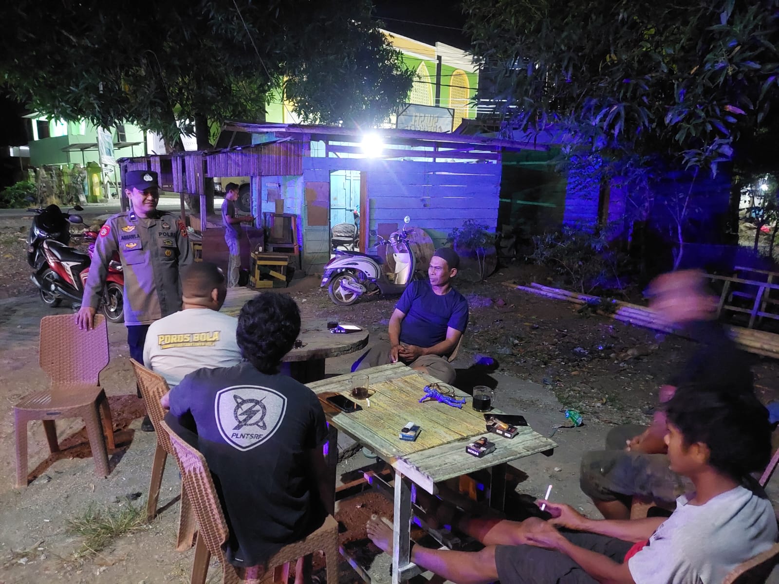 Selain itu dalam pelaksanaan patroli biru juga menyambangi sekelompok anak remaja yang lagi nongkrong dan menjalin silaturahmi dengan tokoh masyarakat serta mengajak seluruh element masyarakat untuk berperan aktif dalam menciptakan situasi kamtibmas yang kondusif di wilkum Polsek Bola.