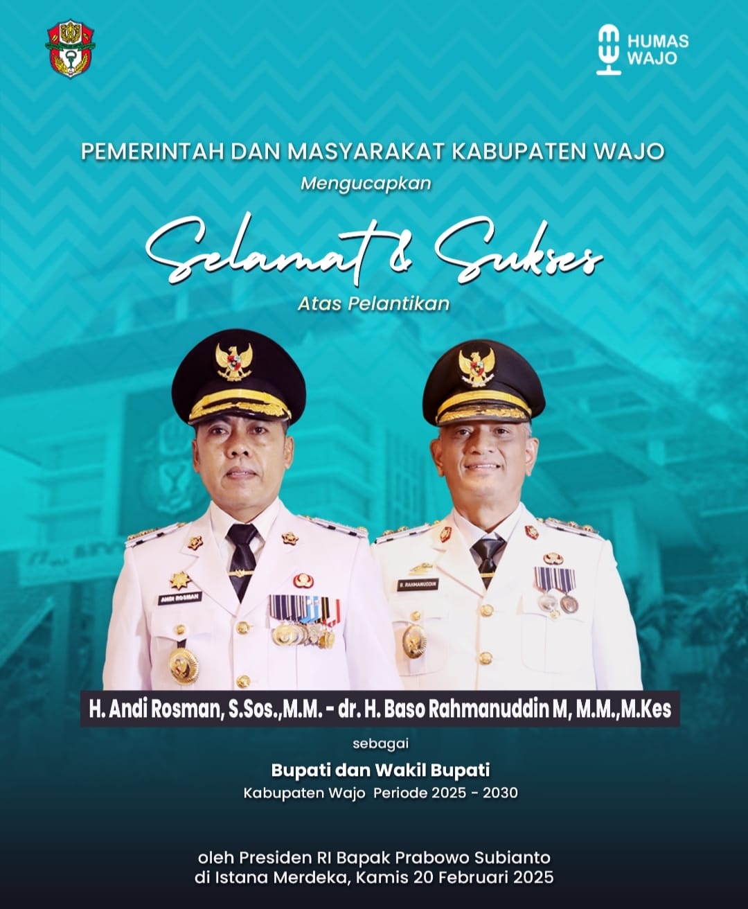 WAJO SULSEL — Kabupaten Wajo Provinsi Sulawesi Selatan resmi memiliki pemimpin baru setelah dilantiknya Bupati H. Andi Rosman dan Wakil Bupati Dr.H.Baso Rahmanuddin Makkarakka ( DBR ). MIN
