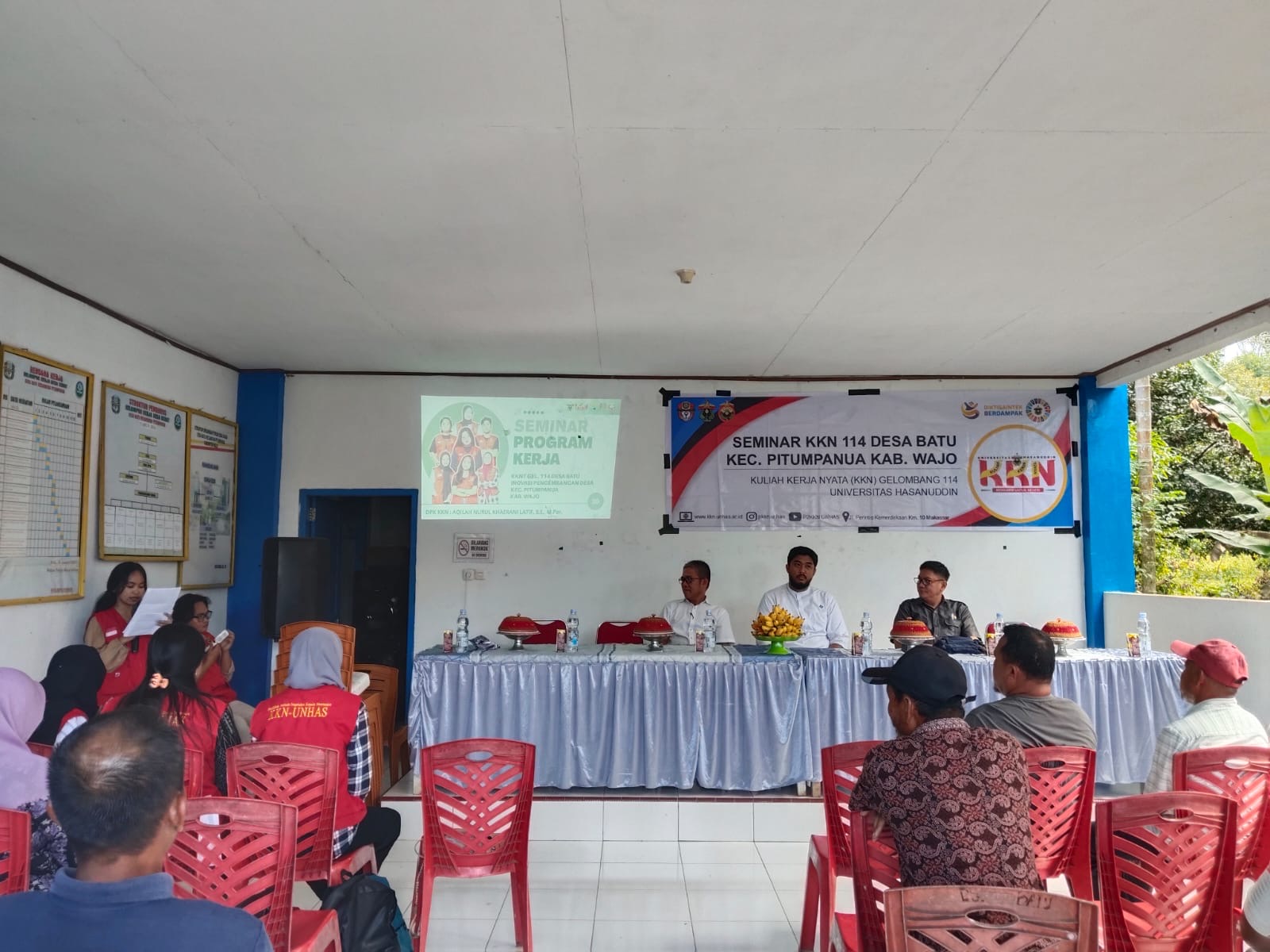 Seminar Program Kerja KKN Tematik Gelombang 114 UNHAS Digelar di Desa Batu, Kecamatan Pitumpanua, Kabupaten Wajo