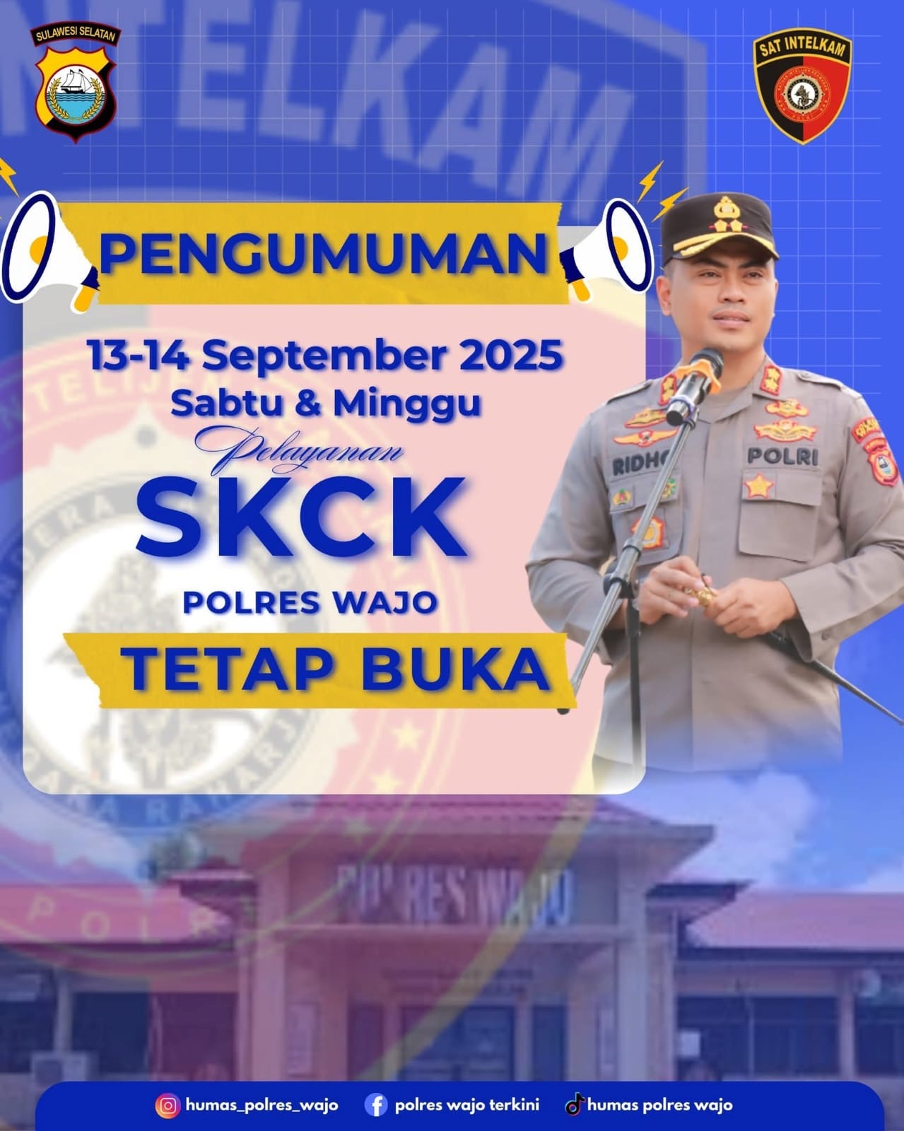 Kapolres Wajo, AKBP Muhammad Rosid Ridho, S.I.K. menyampaikan bahwa pelayanan SKCK tetap berjalan untuk memberikan akses yang lebih luas kepada masyarakat yang membutuhkan dokumen ini, terutama bagi mereka yang hanya memiliki waktu luang di hari libur.