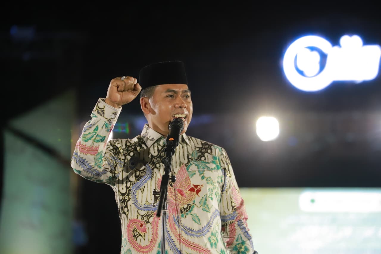 CELEBESPLUSONLINE.COM//WAJO SULSEL- Bupati Andi Rosman dan Wabup dr Baso saat hadiri malam penutupan Musabaqah Qiraatil Kutub (MQK) Nasional ke-8 dan Internasional Ke-1 di Lapangan Merdeka Sengkang, Senin (6/10/2025) malam.