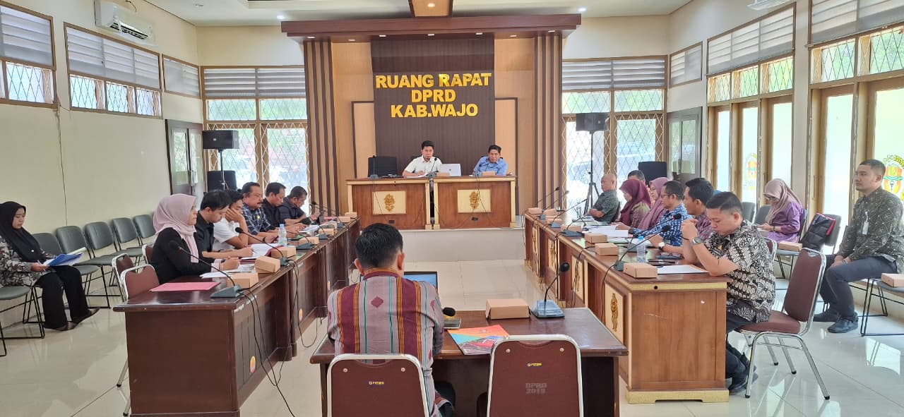 Ketua Bapemperda DPRD Wajo, Amran, S.Sos., M.Si, memimpin rapat yang dihadiri perwakilan empat komisi DPRD serta sejumlah kepala dinas dan bagian dari Pemkab Wajo, termasuk Dinas PMD, BPKPD, Disnakertrans, hingga Bagian Hukum dan Organisasi Setda.