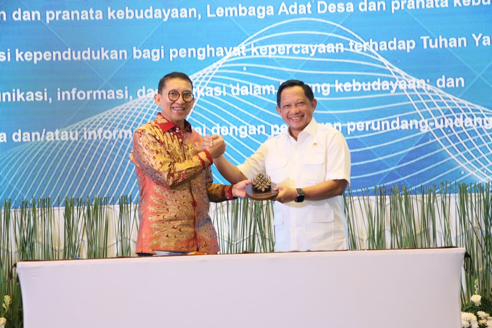 CELEBESPLUSONLINE.COM// JAKARTA – Menteri Dalam Negeri (Mendagri) Muhammad Tito Karnavian menandatangani Nota Kesepahaman antara Kementerian Dalam Negeri (Kemendagri) dan Kementerian Kebudayaan sebagai langkah memperkuat sinergi antarkementerian dalam upaya memajukan kebudayaan nasional. Penandatanganan berlangsung di Plaza Insan Berprestasi, Gedung A Kementerian Pendidikan Dasar dan Menengah (Kemendikdasmen), Jakarta, Selasa (21/10/2025).