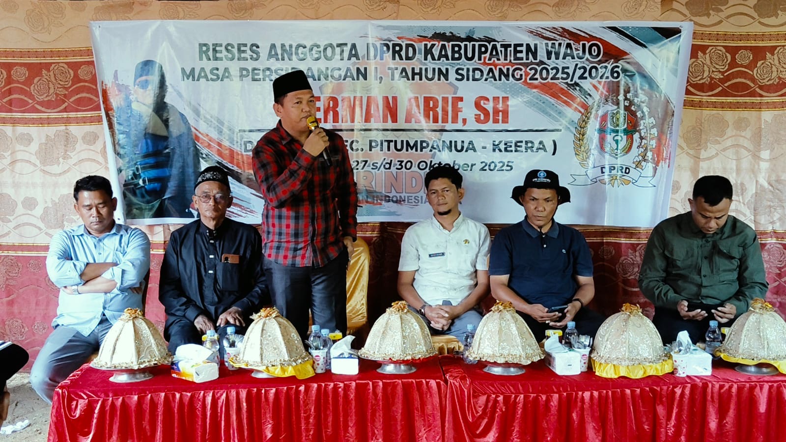 CELEBESPLUSONLINE. COM//WAJO SULSEL — Ketua Komisi II DPRD Kabupaten Wajo, Herman Arif SH, menggelar kegiatan reses masa persidangan I tahun 2025/2026 di Desa Padangloang, Kecamatan Pitumpanua, Kamis (30/10/2025).