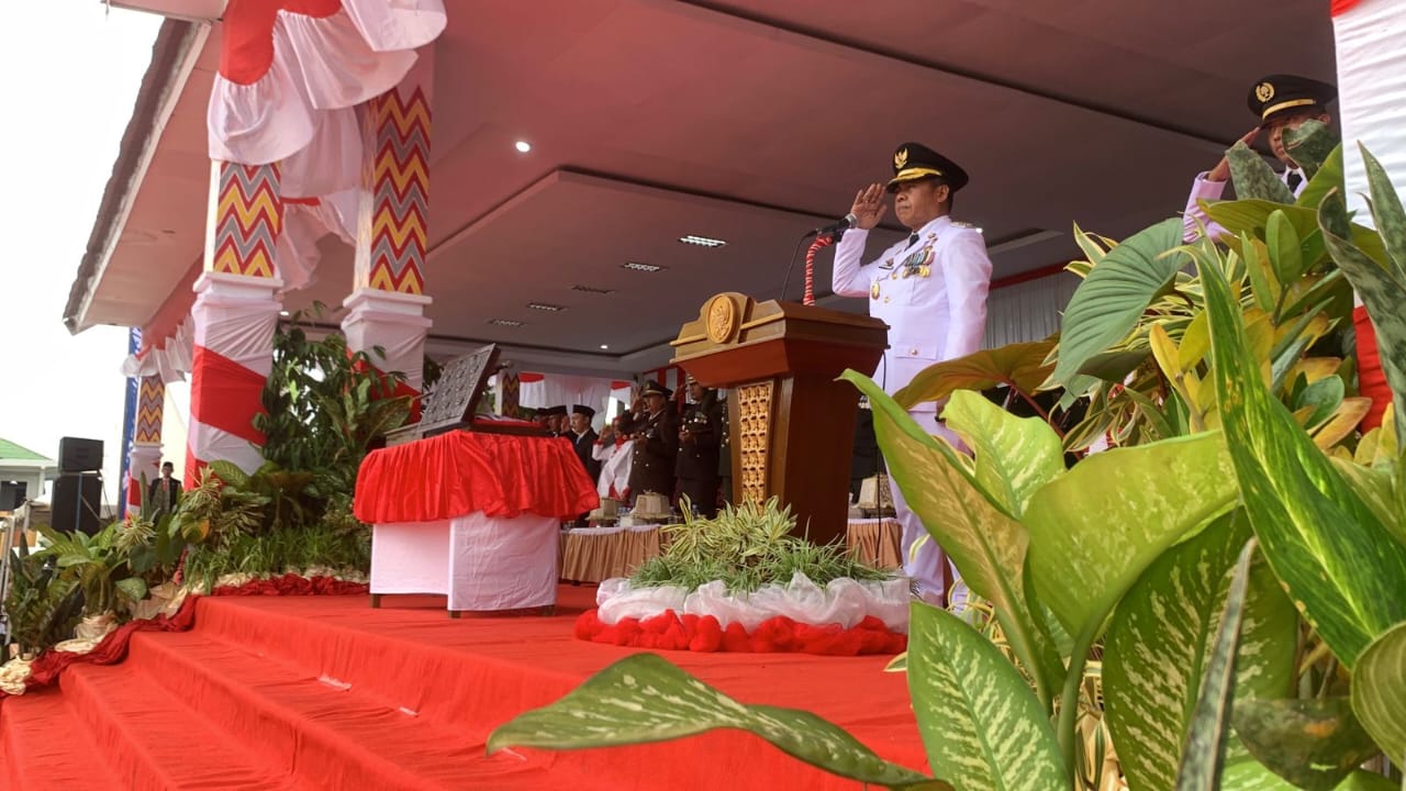 Andi Rosman mengucapkan selamat Ulang Tahun ke-80 Kemerdekaan Republik Indonesia dari mimbar upacara.