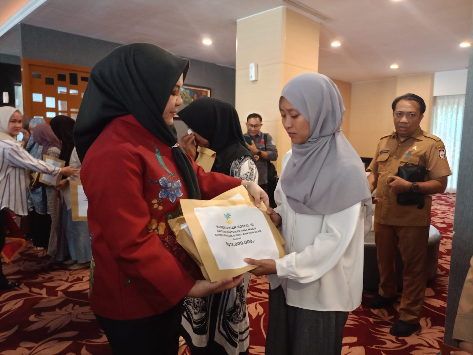 Penyerahan santunan kepada 10 ahli waris korban bencana kebakaran, sebanyak 11 orang korban bencana kebakaran dari 7 Kabupaten Kota dengan rincian sebagai berikut :