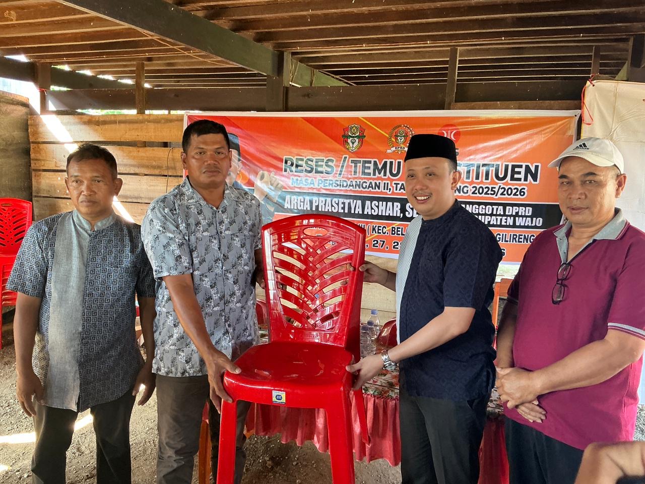 Dalam kesempatan tersebut, Arga Prasetya Ashar tidak hanya mendengarkan aspirasi warga, tetapi juga menyalurkan sejumlah bantuan nyata kepada masyarakat. Bantuan yang diserahkan meliputi 600 unit kursi, 4 unit tenda kerucut, 150 titik lampu jalan, serta satu unit mobil ambulans untuk mendukung layanan kesehatan masyarakat Kecamatan Belawa