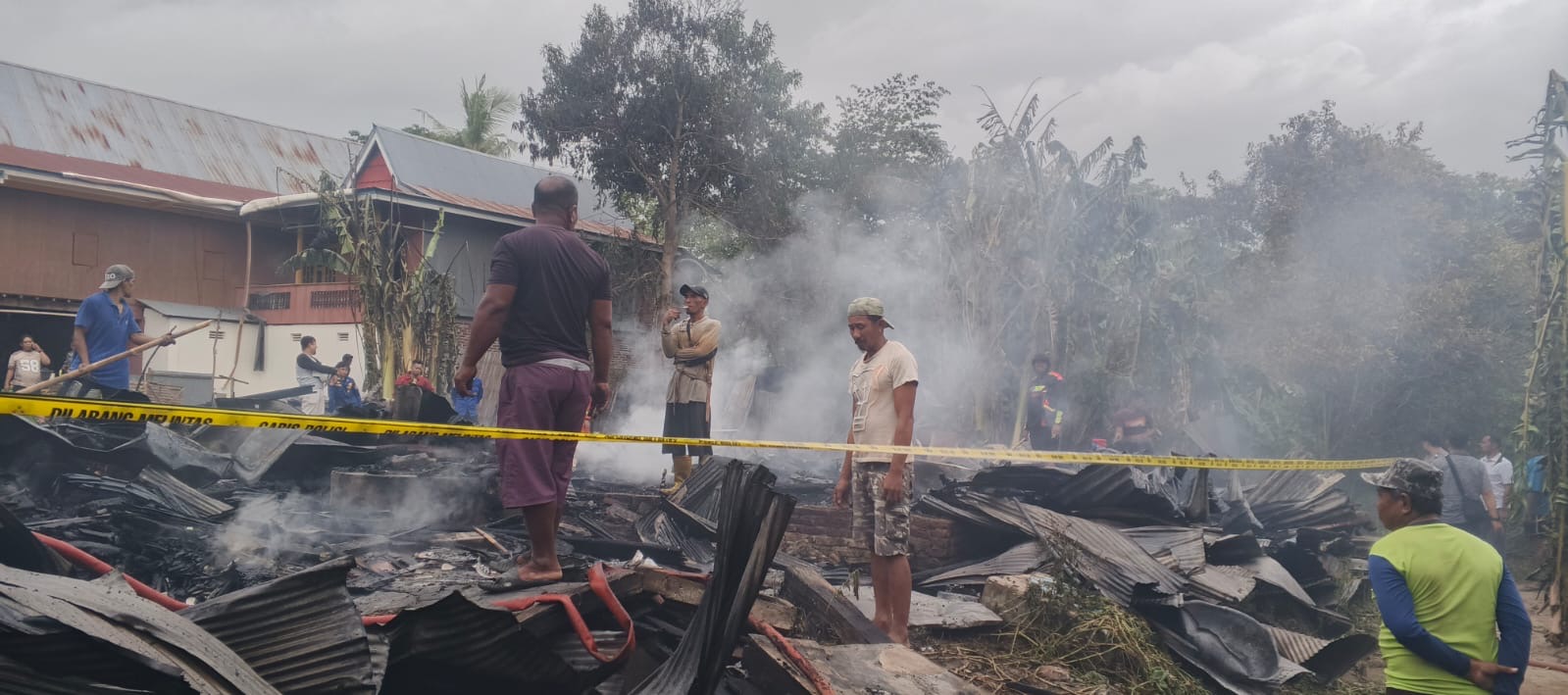 Polisi telah melakukan olah TKP, mendata korban dan saksi, berkoordinasi dengan pemerintah setempat, serta membantu evakuasi barang-barang yang masih dapat diselamatkan. Bhabinkamtibmas juga memberikan edukasi kepada masyarakat terkait bahaya penggunaan listrik berlebihan dan pentingnya pemeriksaan instalasi listrik guna mencegah kejadian serupa.