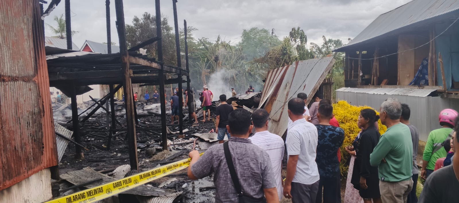 Akibat kejadian tersebut, dua rumah panggung berbahan kayu hangus terbakar. Selain bangunan, korban juga kehilangan emas sekitar 100 gram serta sejumlah dokumen penting seperti sertifikat rumah dan surat berharga lainnya. Total kerugian ditaksir mencapai Rp500 juta.