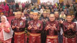 Mengenakan pakaian adat Bugis lengkap — jas tutup berwarna gelap, songkok Recca, dan lipa’ sabbe bermotif warna-warni — para pejabat tampil membanggakan saat menerima piagam penghargaan berbingkai putih di hadapan hadirin.